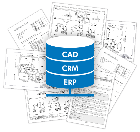 Die Verwendung einer gemeinsamen Firebird SQL-Datenbank ermöglicht, einen schnellen, sicheren und durchgängigen Arbeitsablauf über die Elektro-CAD · CRM · ERP Modulgrenzen hinweg: Projekte, Adressen, E-Mails, Faxe, Telefonie, Historie, Termine, Aufgaben, Angebote, Rechnungen, Dokumente. Alle gemeinsam verwendeten Stammdaten wie beispielsweise Adressen, Ansprechpartner, Material oder Leistungen brauchen nur noch einmal eingegeben und an einer zentralen Stelle gepflegt zu werden.