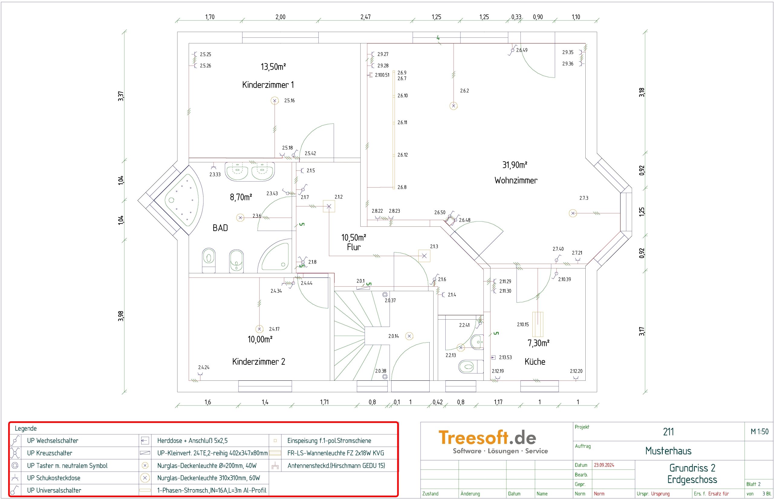 Die Legende kann auf Wunsch rechts neben oder unterhalb der Grundrisszeichnung dargestellt werden.