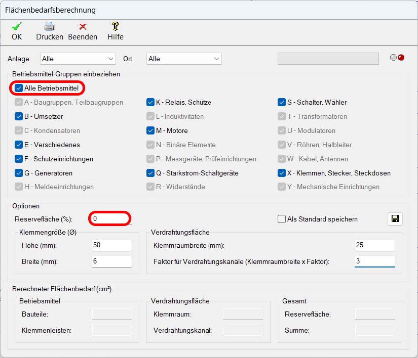 Wahl des Schaltschrankes mit der Flächenbedarfsberechnung