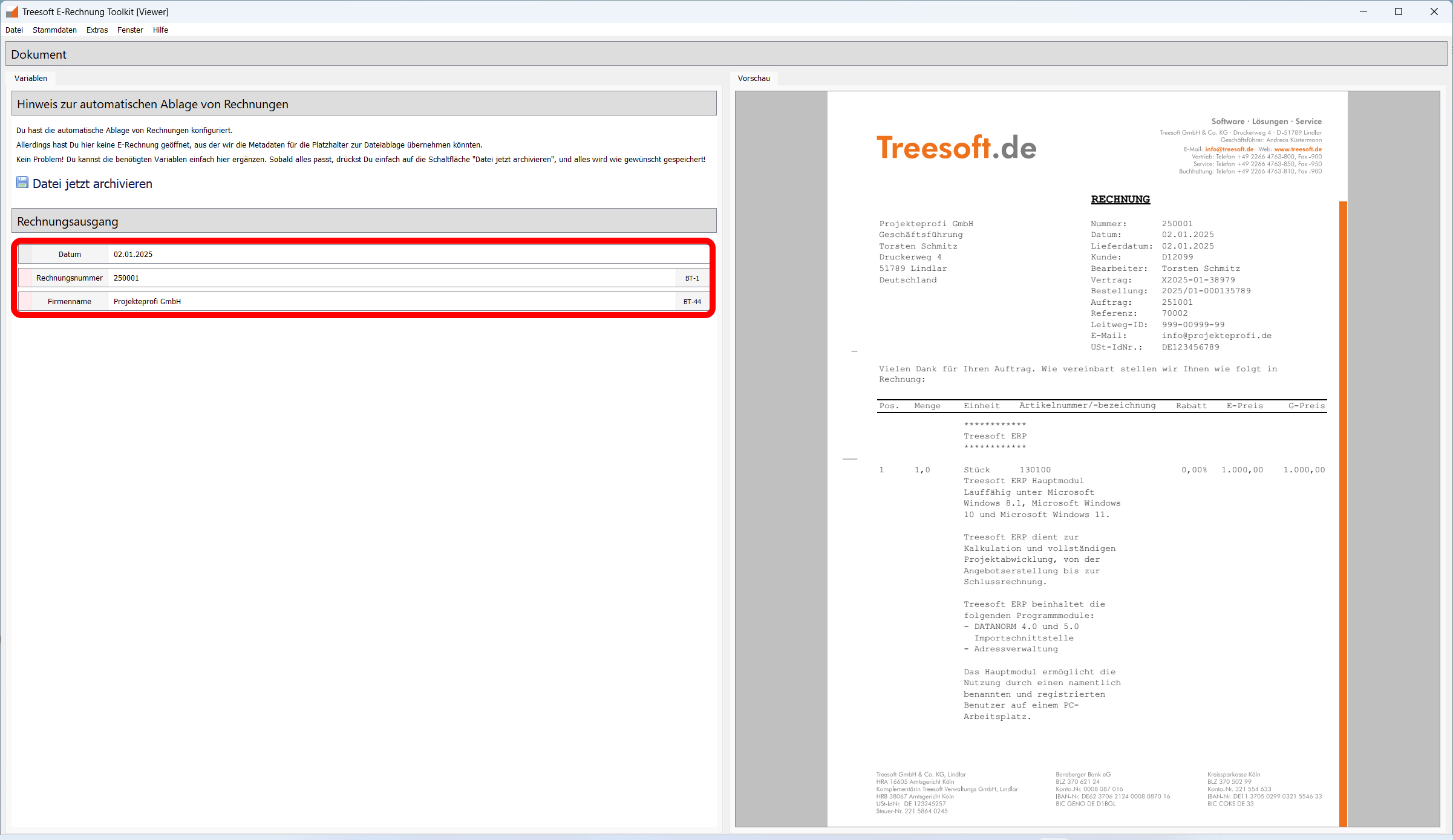 Lade jetzt das E-Rechnung Toolkit herunter und nutze direkt den Treesoft XRechnung Viewer. Empfange E-Rechnungen, mit automatisierter Dateiablage nach deinen Vorgaben und der automatischen Vergabe der Dateinamen.