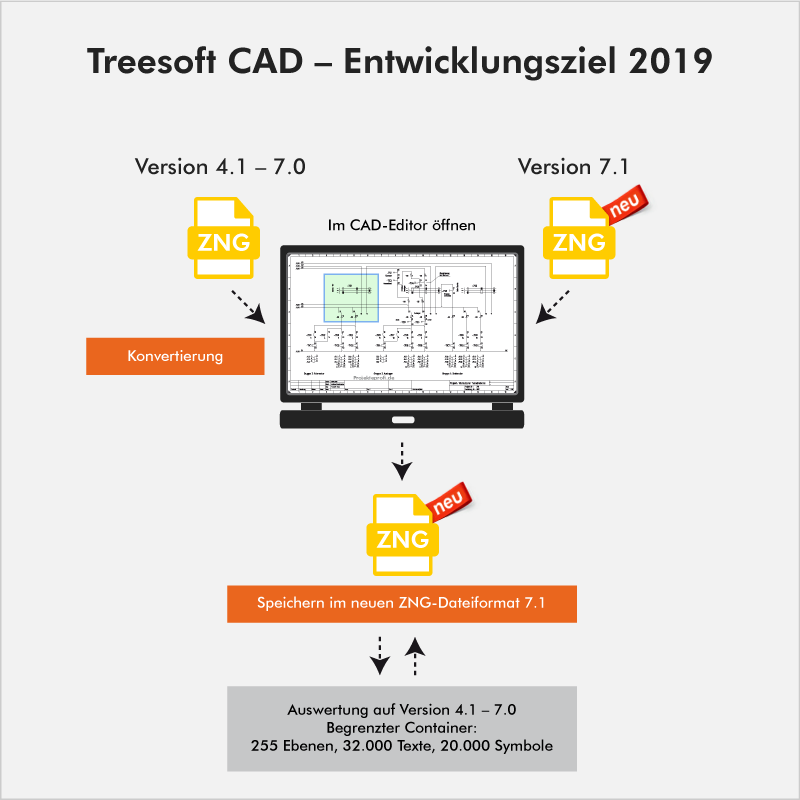 Um die mit einer Treesoft CAD Version 7.1 erstellte Zeichnungsdatei lesen zu können, müsst Ihr demnach auch das Upgrade 7.1 installieren.