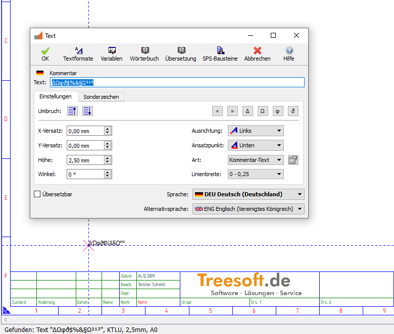 Treesoft CAD 7.1 unterstützt jetzt sämtliche Unicode-Zeichensätze. Dafür wurde das Datenformat der Zeichnungsdateien entsprechend erweitert.