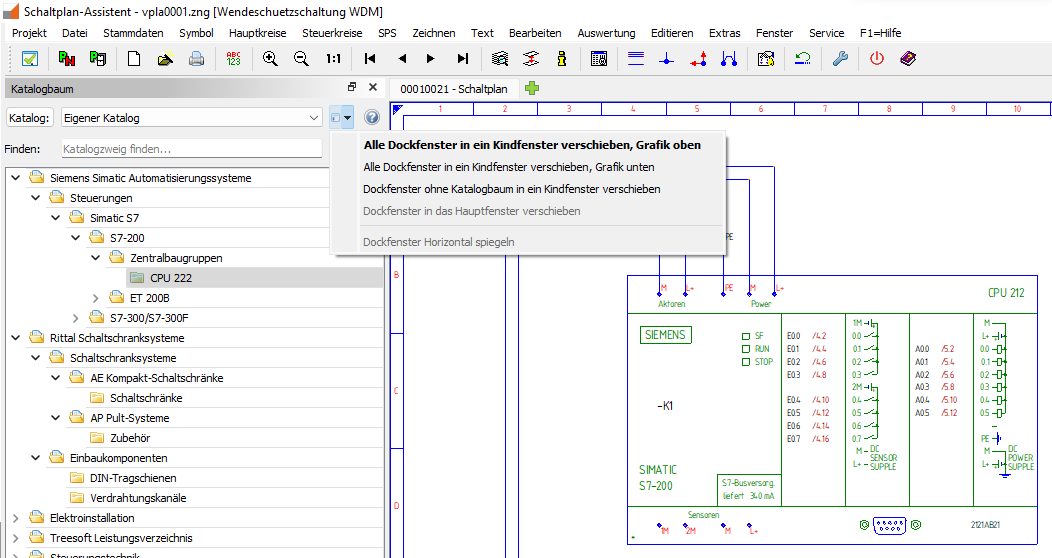 Mit dem Upgrade auf Version 7.2 haben wir in der Funktion Symbol über Katalogbaum setzen im Dockfenster Katalogbaum die Dropdown-Schaltfläche Dockfenster verschieben eingebaut. Das Dropdown-Menü beinhaltet Befehle zum Verschieben und Positionieren der Dockfenster in ein Kindfenster. Über diese Schaltfläche lassen sich alle Dockfenster der Funktion mit nur einem Klick in einem Kindfenster öffnen, welches sich dann auf einen zweiten oder dritten Bildschirm verschieben oder auf einem Ultrawide-Monitor beliebig positionieren lässt.