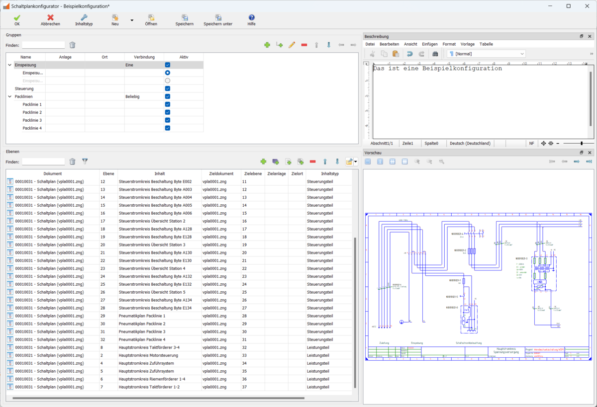 Noch mehr Komfort - erstelle einfach für spezifische Anwendungsfälle unterschiedliche Konfigurationen und speichere sie. Danach kannst du automatisiert Schaltpläne in Windeseile erstellen und dir eine Menge Arbeit ersparen!